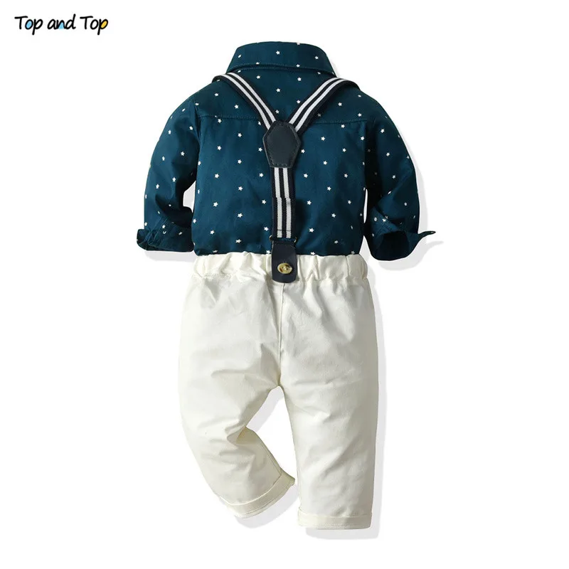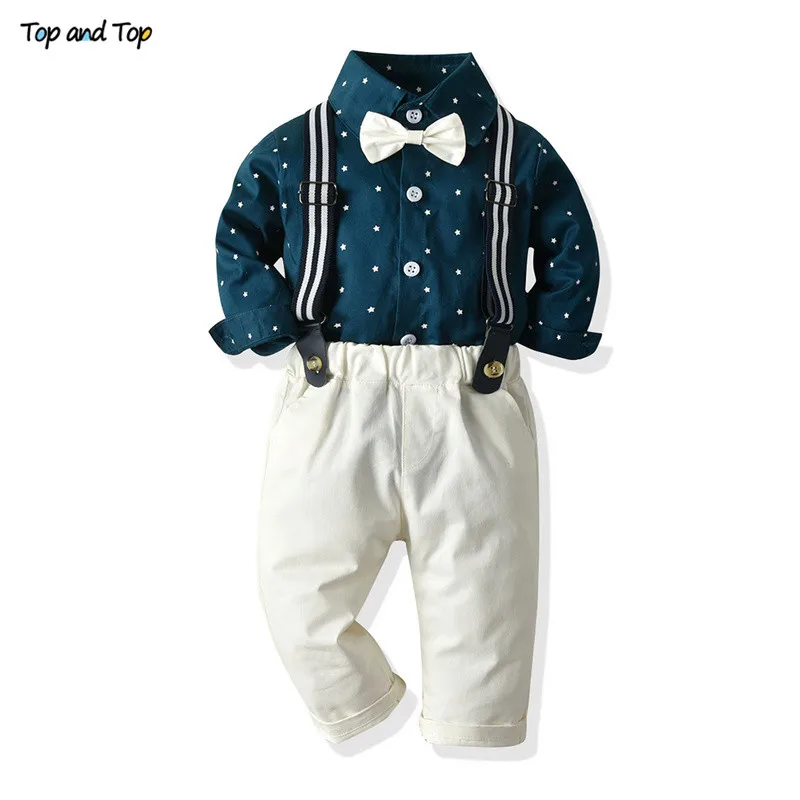 Топ и топ, новинка 2020, Модный комплект одежды для маленьких мальчиков, Детская рубашка с длинным рукавом и звездами, топ + комбинезоны, наряд, Роскошная Одежда для мальчиков