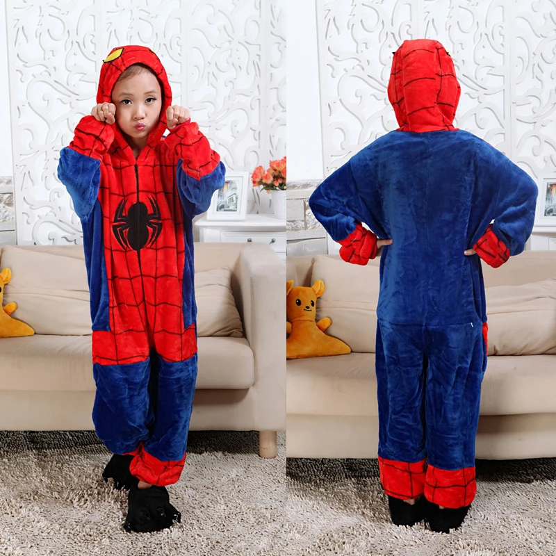Зимние фланелевые мягкие теплые пижамы-кигуруми паук детские пижамы...