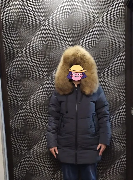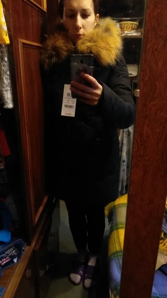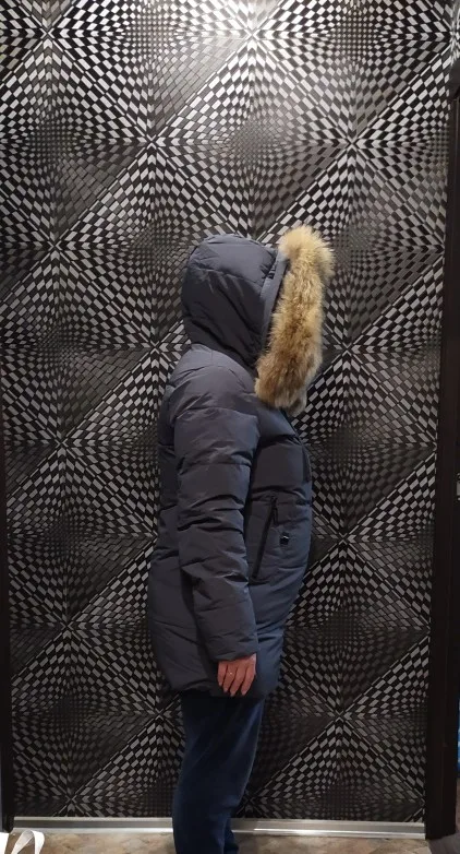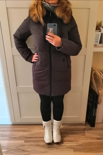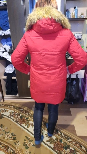 За пуховик продавцу большое спасибо. Получила уже через неделю после заказа. Доставляют СДЭКом до квартиры. На ог 92, об 98 взяла 48 китайский размер. Но замеры куртки в груди немного не соответствуют таблице, написано 110, мои замеры показали 106, некритично, конечно. Пуховик сидит хорошо, свободно, нигде не тянет, но в бедрах хотелось бы чуть-чуть свободней, вот, видимо этих нескольких см не хватило. Сейчас буду заказывать куртку на весну 50 размера. Мех густой, лежит удобно по шее, шарф не потребуется. Ткань матовая, плотная. карманы ровно там, где удобно. Выгуляла сегодня по морозцу, очень комфортно и тепло. Еще раз - большое спасибо продавцу!