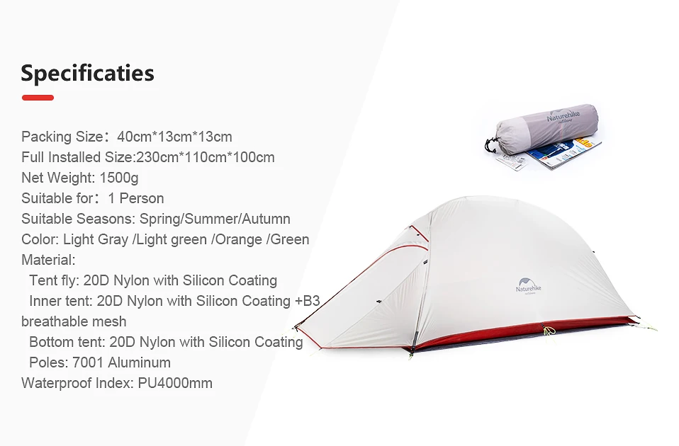 Палатка для кемпинга Naturehike Cloud Up, 20 г, силикон, 1,2 кг
