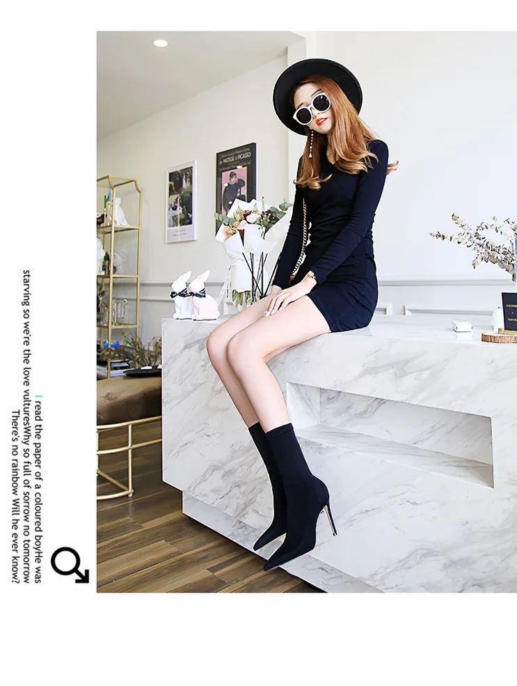 Лаконичные эластичные женские ботинки из лайкры Новая Осенняя обувь...