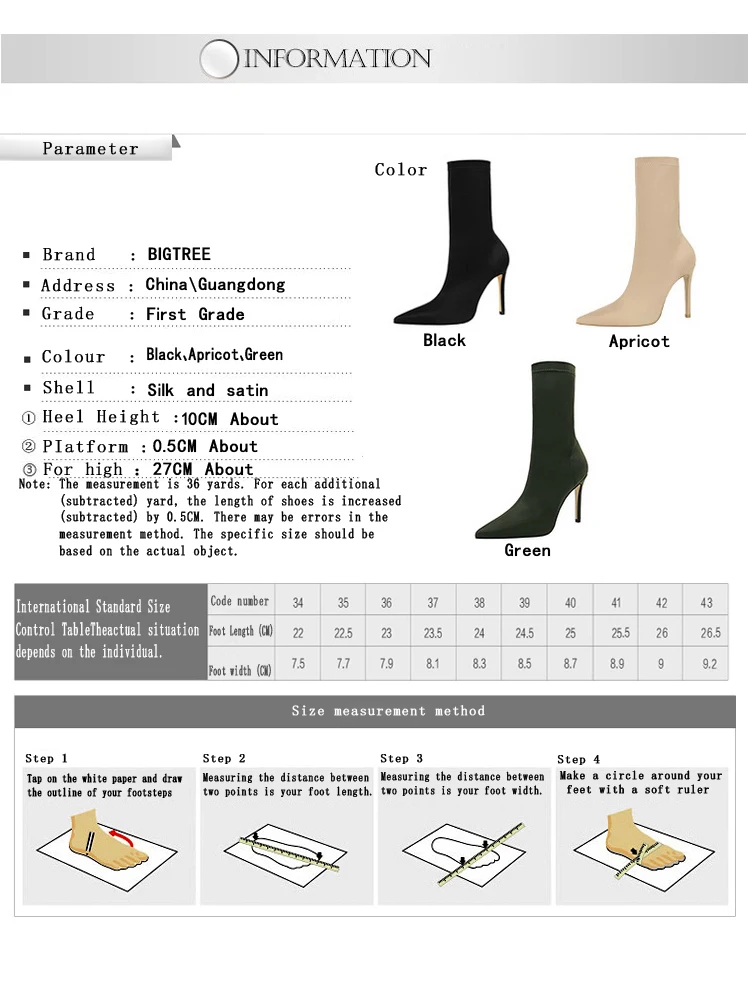 1.Пожалуйста, закажите размер обувиСогласно длине вашей стопы. Вы можете связаться с нами напрямую, если у вас есть какие-либо вопросы по размеру.Например:Пожалуйста, заказывайтеАмериканский размер 5, Это означает, чтоРазмер 36, Если длина вашей стопыОколо 23,0 см. Но если ваши ногиОчень широкий, Пожалуйста, заказывайтеБольший размер.2.Пожалуйста, сравните размеры с вашими, прежде чем купить!