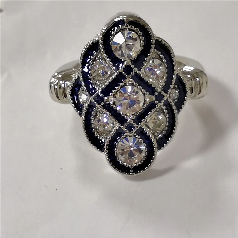 Изысканное кольцо с цветком, простое кольцо с имитацией синего огне...