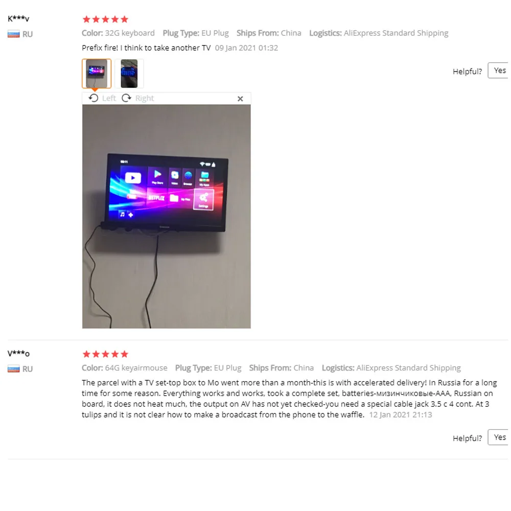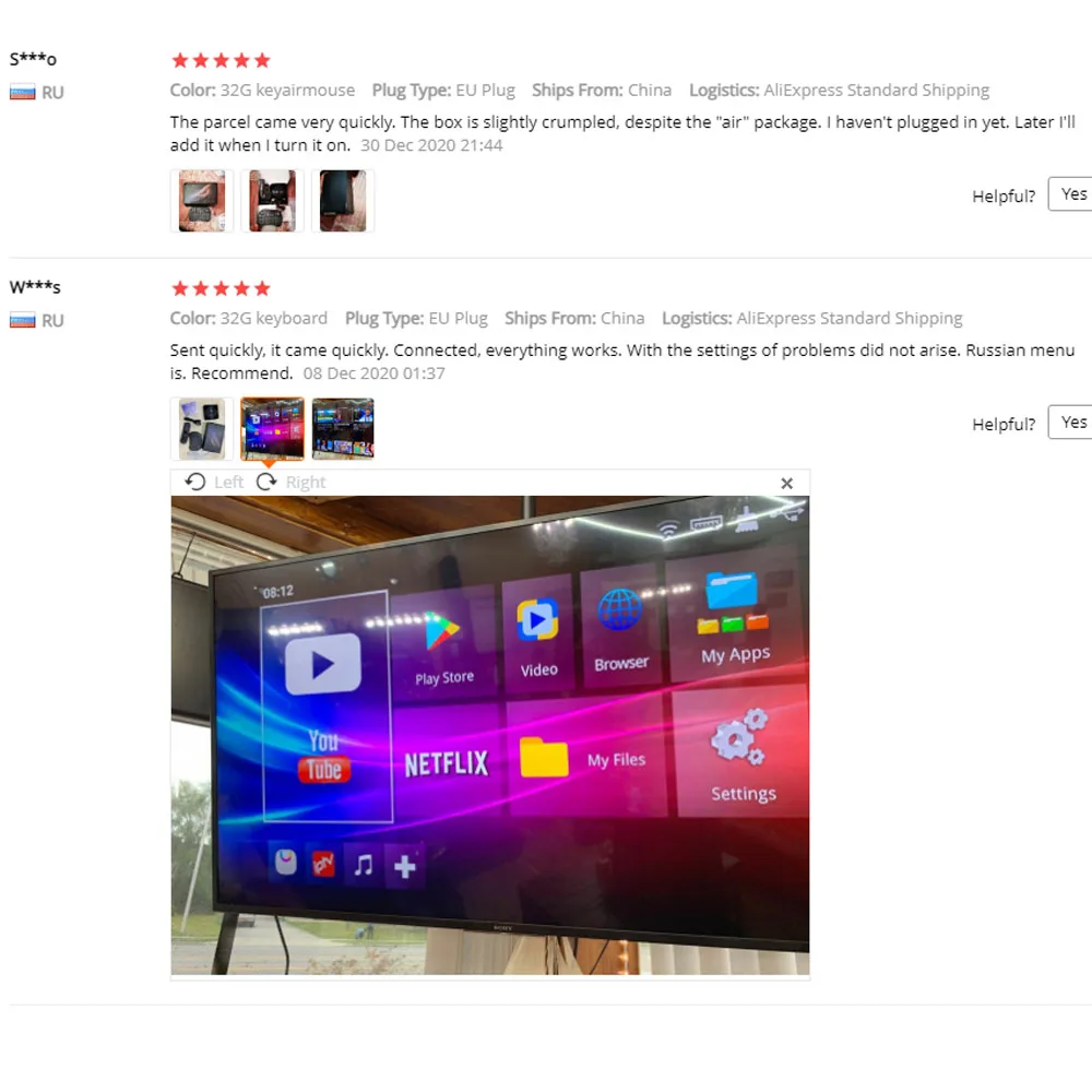 Процессор: Allwinner H616 четырехъядерный 64 бит четырехъядерный Cortex-A53@1.4-1.8GHz Графический процессор: Mali-T720 RAM : 2G/4G ROM : 16G/32G/64G Видео 6K/4K: HDR10 ,HLG,HDR,6K 30fps,4K 60fps, 1080p 60fps декодирование видео, Включая H265/HEVC Main/Main 10 profile level5.2 High-tier; 4K 60FPS;H264/AVC BP/MP/HP level5.1,MVC,4K 30fps; Wi-Fi: 802,11 b/g/n/AC (очень быстрый WiFi, около 1000Mbs) двухдиапазонный Wifi, 2,4G и 5G с Bluetooth Карта памяти: поддержка tf-карты, до 32 Гб HDMI: HDMI 2.0a;HDCP2.2 OTG: Да Хост: USB 2,0 Операционная система: Android 10,0 Видеовыход: HDMI,AV Bluetooth: Да
