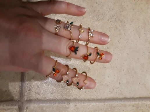 Некоторые кольца были регулируемые, другие не были. Их очень сложно носить, потому что они намного больше, чем ожидалось, но они красивые.