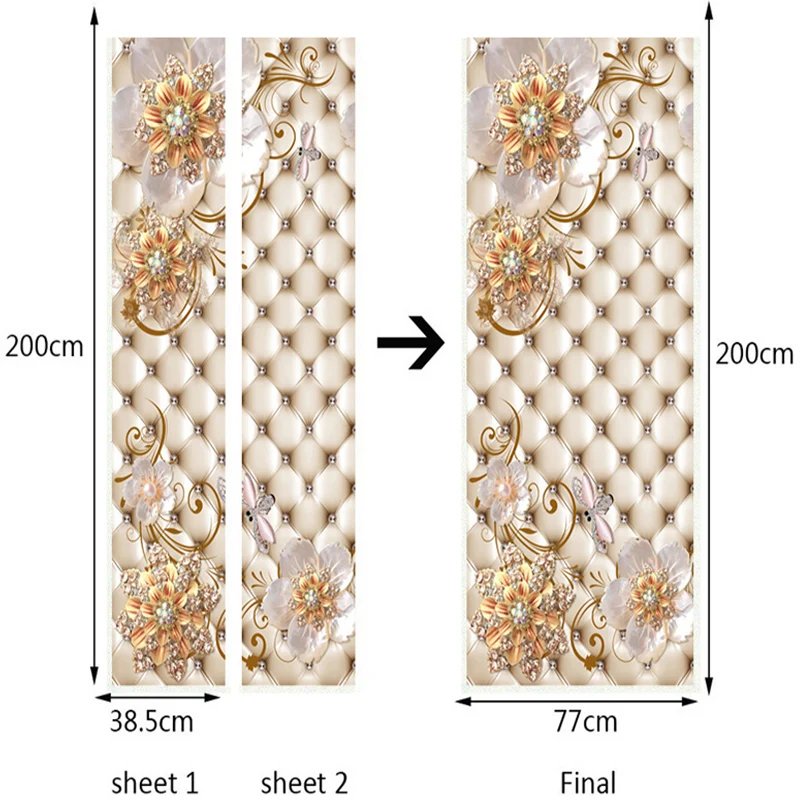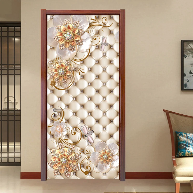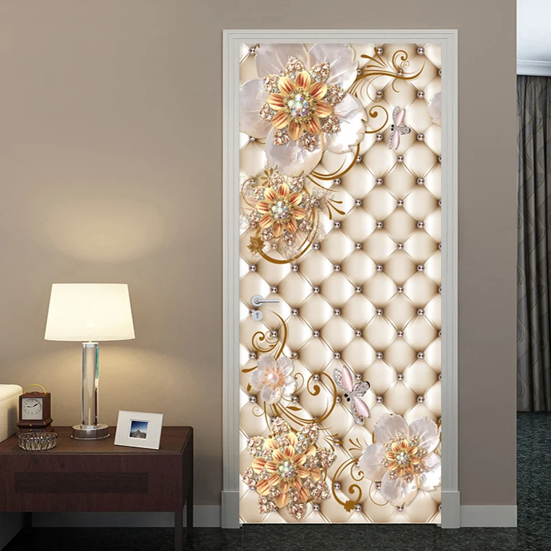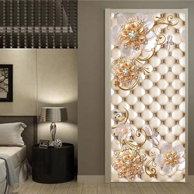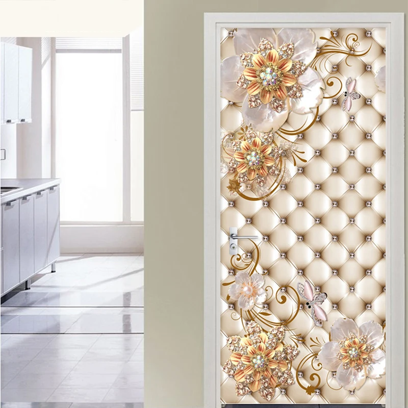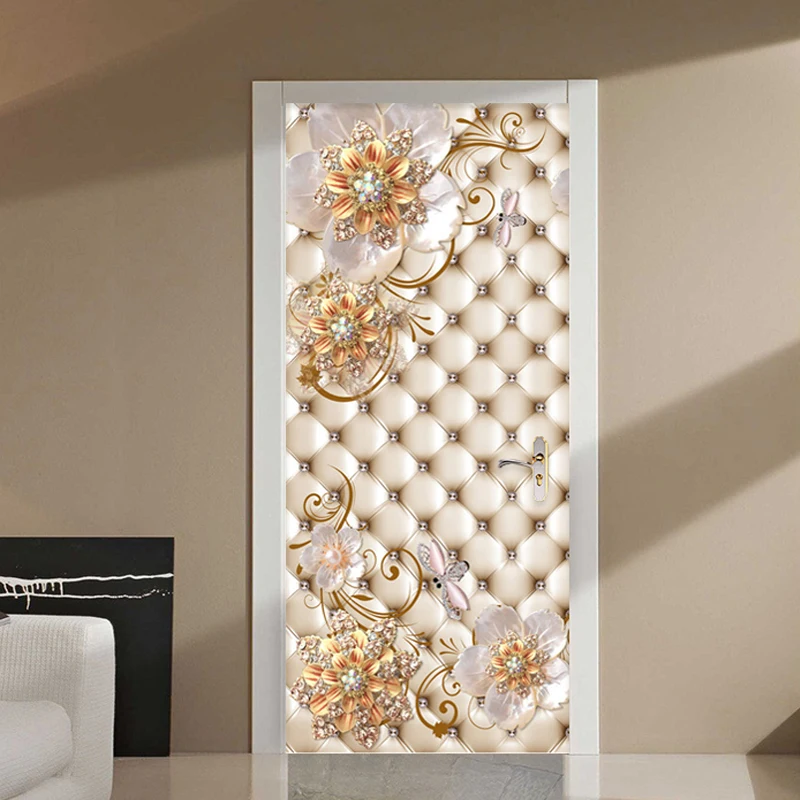 Самоклеящиеся наклейки на дверь из ПВХ, 3D стерео золотые ювелирные украшения, мягкие рулоны цветов, Роскошный домашний декор, постер на дверь, наклейки на обои