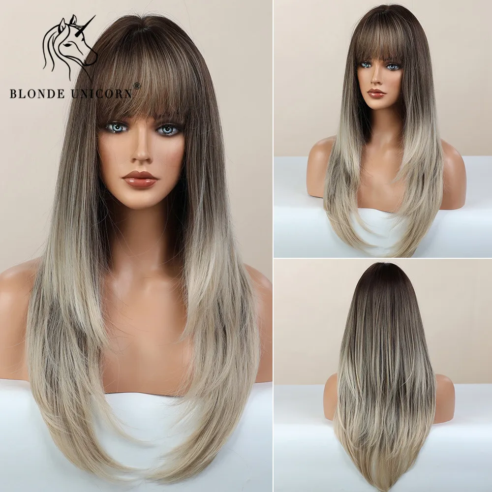 Синтетические парики средней длины блонд единорог с челкой парик из...