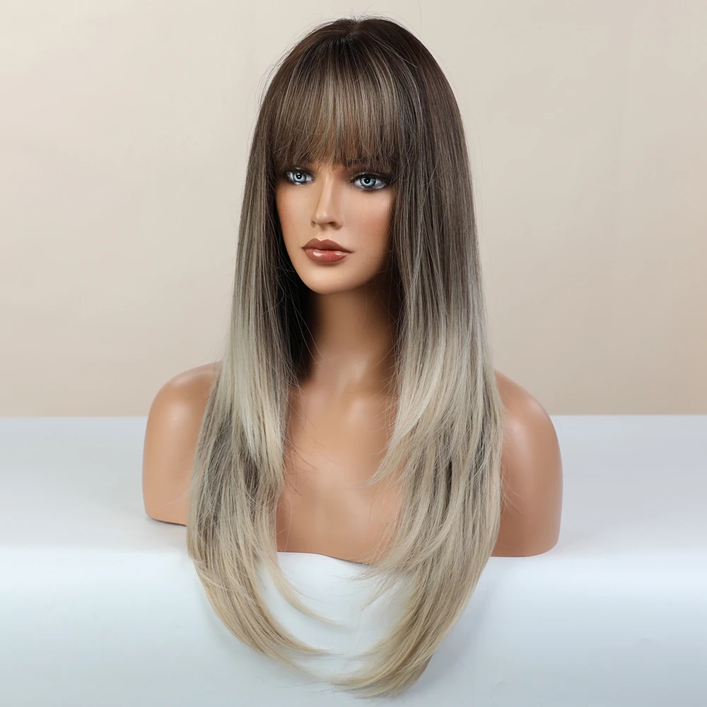 Парик из синтетических длинных прямых темно-каштановых волос, блонд...