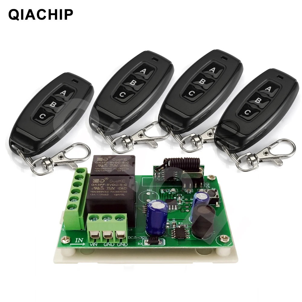 Пульт дистанционного управления QIACHIP 433,92 МГц, 6 в, 12 В, 24 В, 2-канальный релейный модуль, приемник 1527, радиочастотный передатчик, универсальный пульт дистанционного управления для самостоятельной сборки