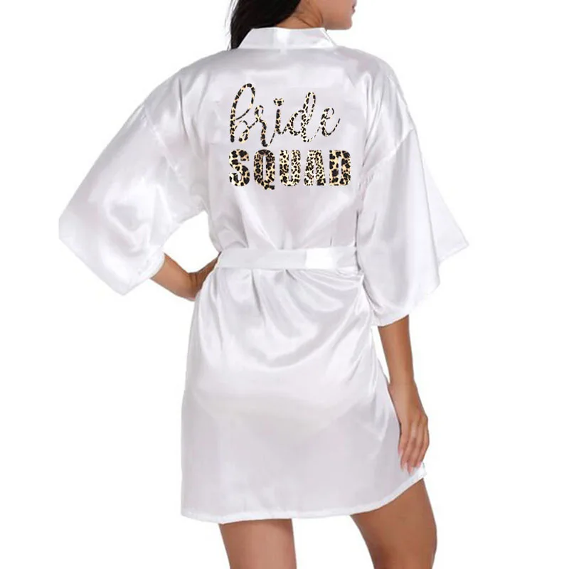 Свадебный халат невесты, Атласный халат с леопардовым принтом для невесты и отряда, женские пижамы, халат, кимоно, Халат