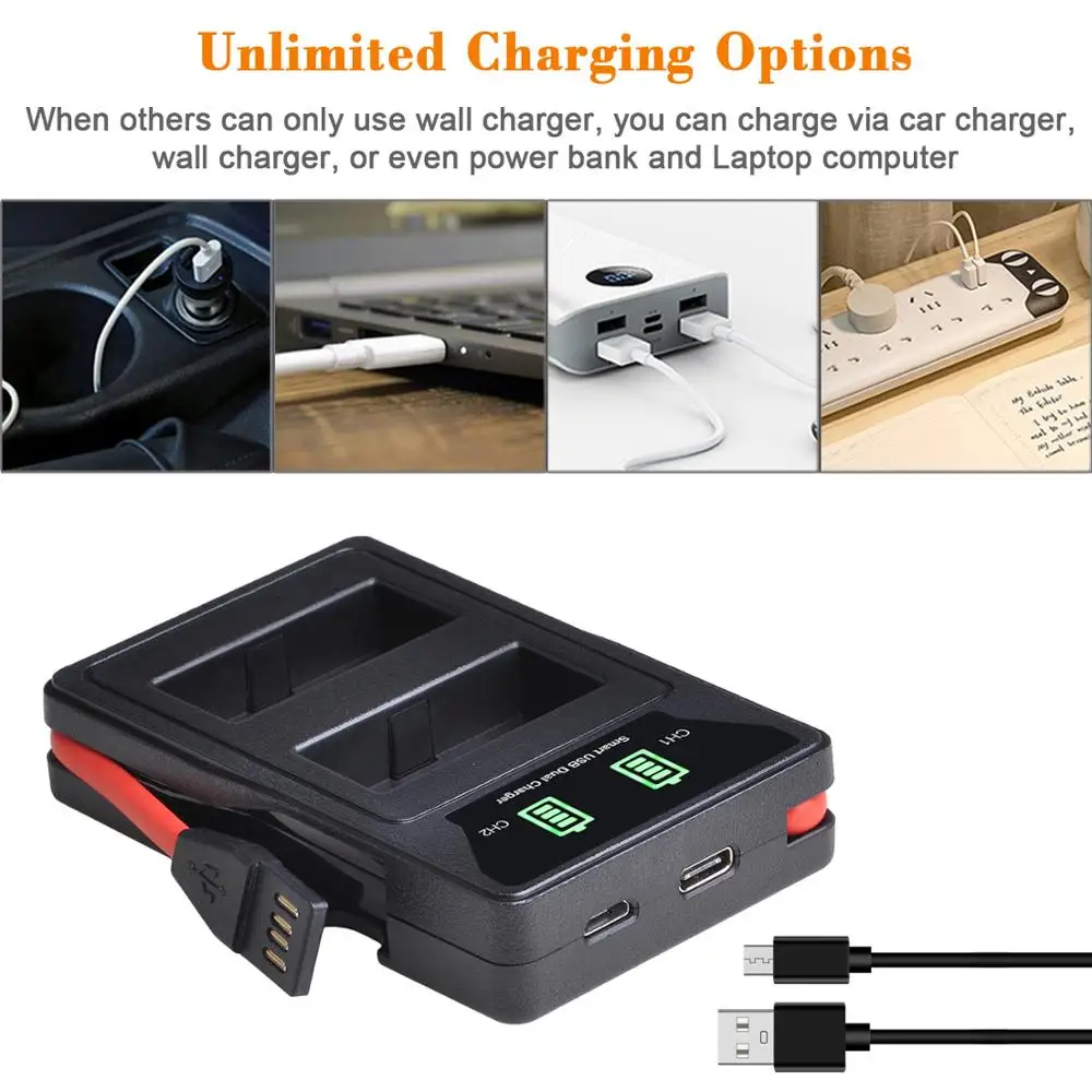 2-канальный Зарядное устройство: Зарядка двух аккумуляторов одновременно и быстро, значительно сэкономить ваше время. Этот дизайн подходит для длительных поездок и быстро удовлетворяет ваши потребности.