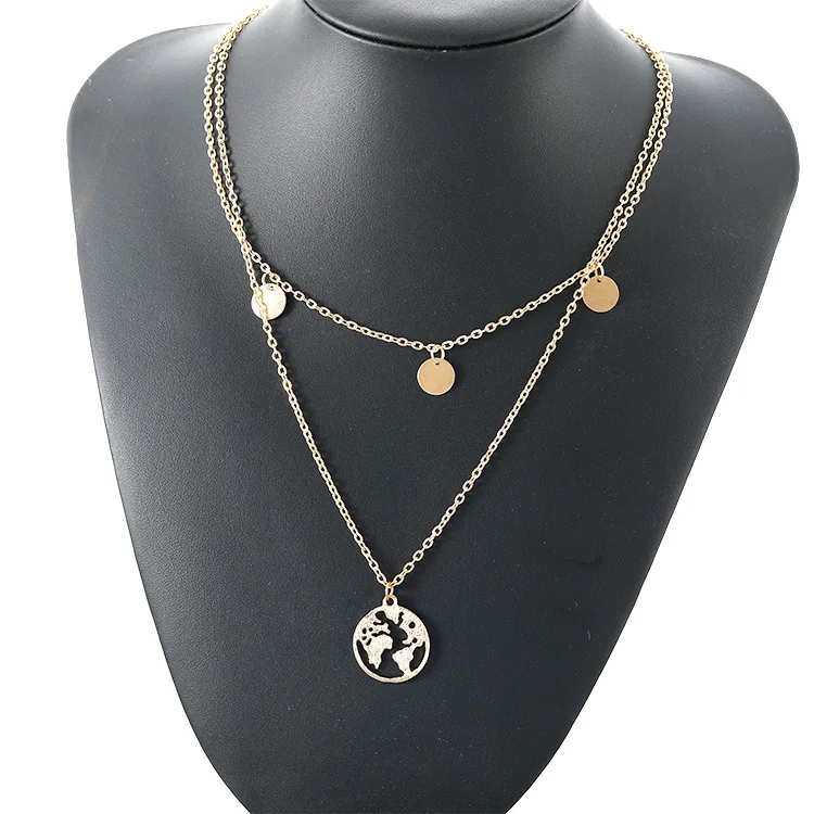 Цепочка с подвеской в виде карты мира, Двухслойное ожерелье с кулон...