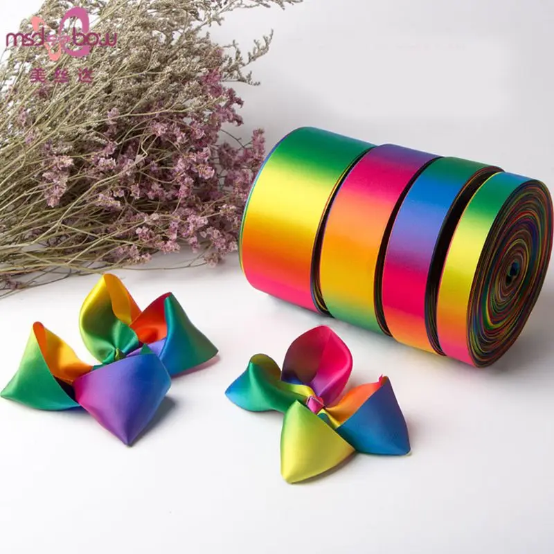 50 ярдов двусторонний полиэстер рулон атласной ленты Градиент Радуга красочные печатные для DIY ручной работы волос бант подарочная упаковка украшения