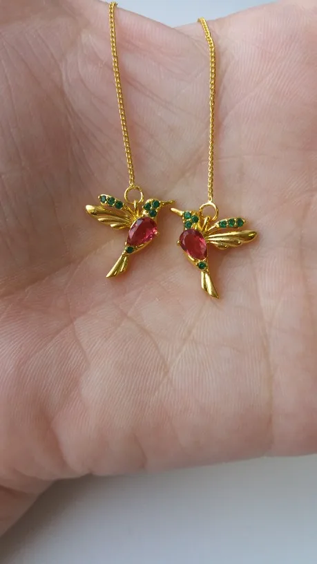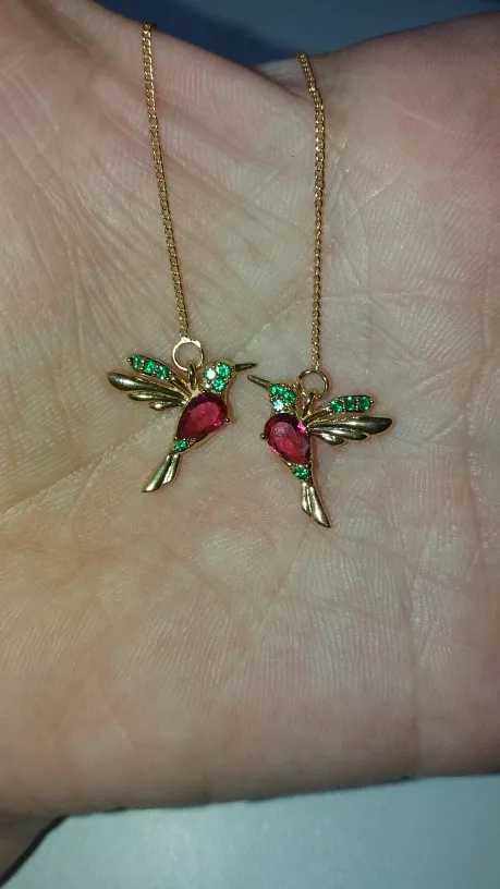 Красивые серёжки, только думала что птичка будет двусторонняя, но на одной части она выпуклая, а на второй просто впалая с позолотой. Доставили в Киев на три дня раньше чем предполагалось