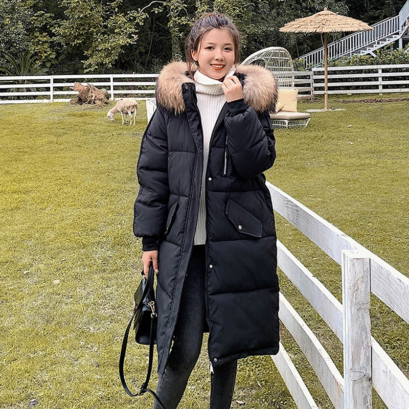 Женская зимняя куртка с капюшоном X-long, женская зимняя куртка с хлопковой подкладкой, свободная куртка с меховым воротником размера плюс, повседневные женские парки