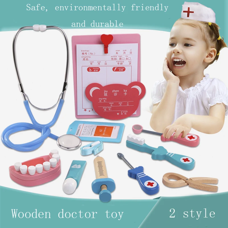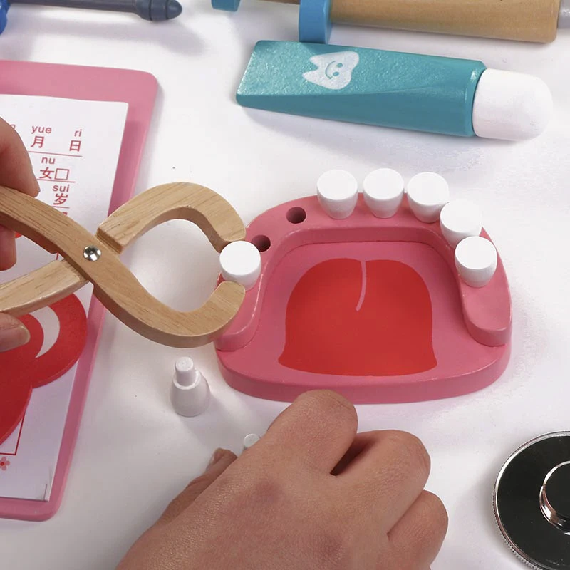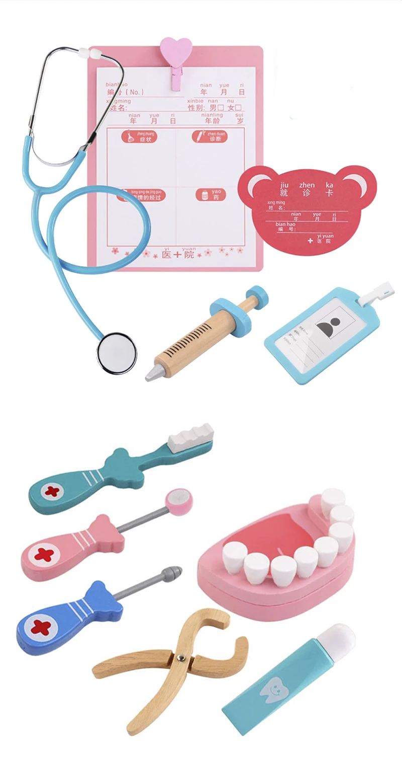 Игрушечный домик для ролевых игр, деревянный медицинский ящик для инструментов, набор дантистов, имитация игрового домика, ролевая игра, жизненные навыки для детей