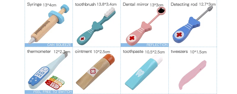 Здравствуйте, добро пожаловать в наш магазин! Качество на первом месте и самый лучший сервис. Все покупатели — наши друзья. Ролевые игры деревянный доктор игрушки красный медицинский набор для стоматолога коробка для лекарств тканевый мешок игрушки для детей имитация игровой домик игрушка Поддержка прямой доставки! Имитирующий Забавный набор игрушек для стоматолога, используя высококачественную древесину, безопасную, экологически чистую, долговечную, вы можете быть уверены, что дети играют. Это хорошая игрушка для взаимодействия родителей и детей, это весело обучать, тренировать координацию рук и глаз детей, социальные навыки и культивировать интерес. Характеристика: Состояние: абсолютно новый Материал: Деревянный Подходящий возраст: 3 года и выше Упаковка: OPP Конкретный размер товара, пожалуйста, обратитесь к картинке Дети не менее трех лет Пожалуйста, используйте под наблюдением взрослых Примечание: 1. Держите подальше от огня и воды. 2. Без оригинальной подарочной коробки, мы будем использовать полиэтиленовый пакет, чтобы упаковать его хорошо и защитить его, пожалуйста, не волнуйтесь 3. Из-за разницы между различными мониторами изображение может не отражать фактический цвет изделия. Мы гарантируем, что модель реального изделия не отличается от представленной на фото. 4. Измерение вручную может иметь погрешность в 2-3 см