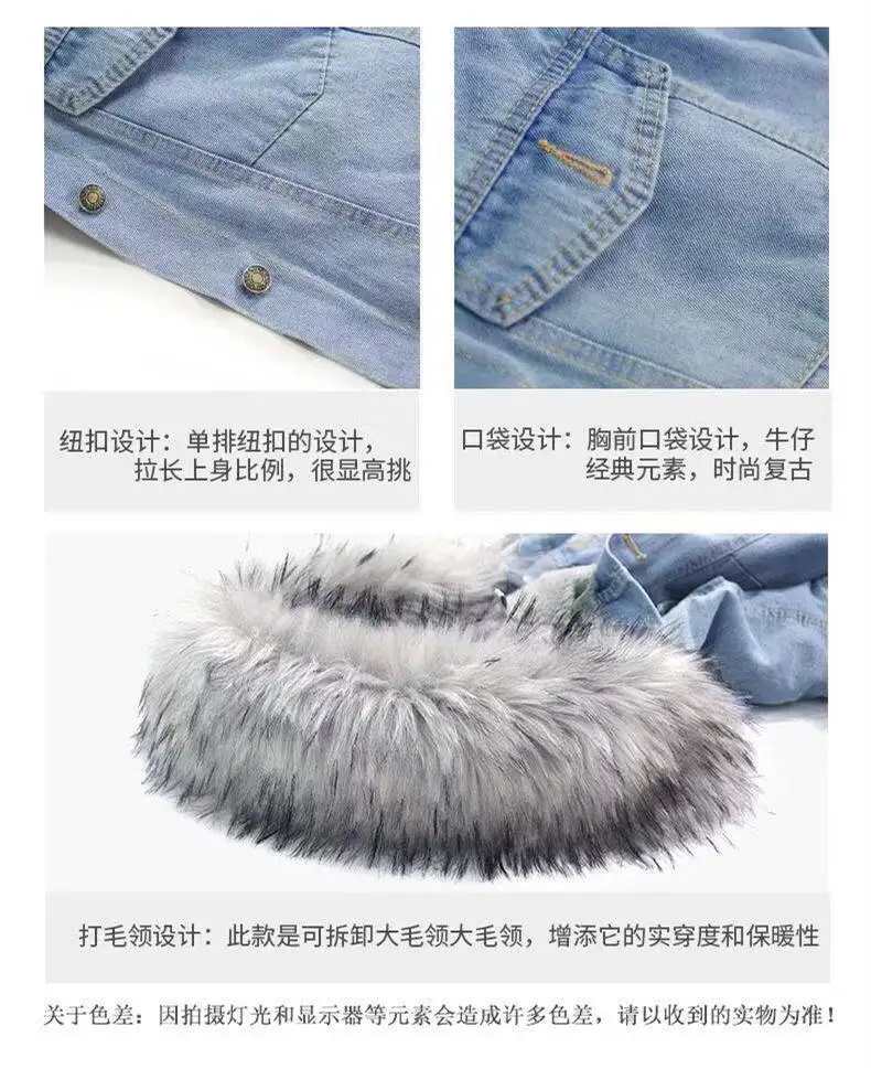 Куртка женская джинсовая, осенне-зимняя, теплая, пушистая, с меховы...