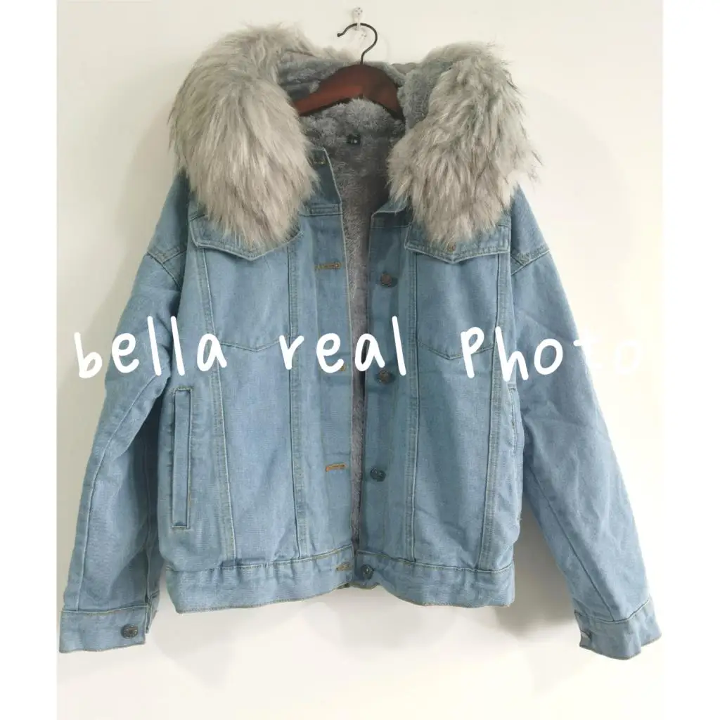 2022 большая джинсовая куртка с воротником из искусственного меха ж...
