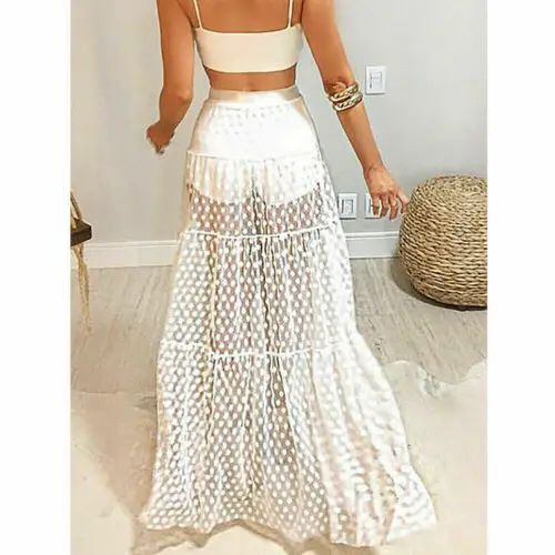 Новые летние Для женщин из сетки в горошек прозрачная юбка макси Об...