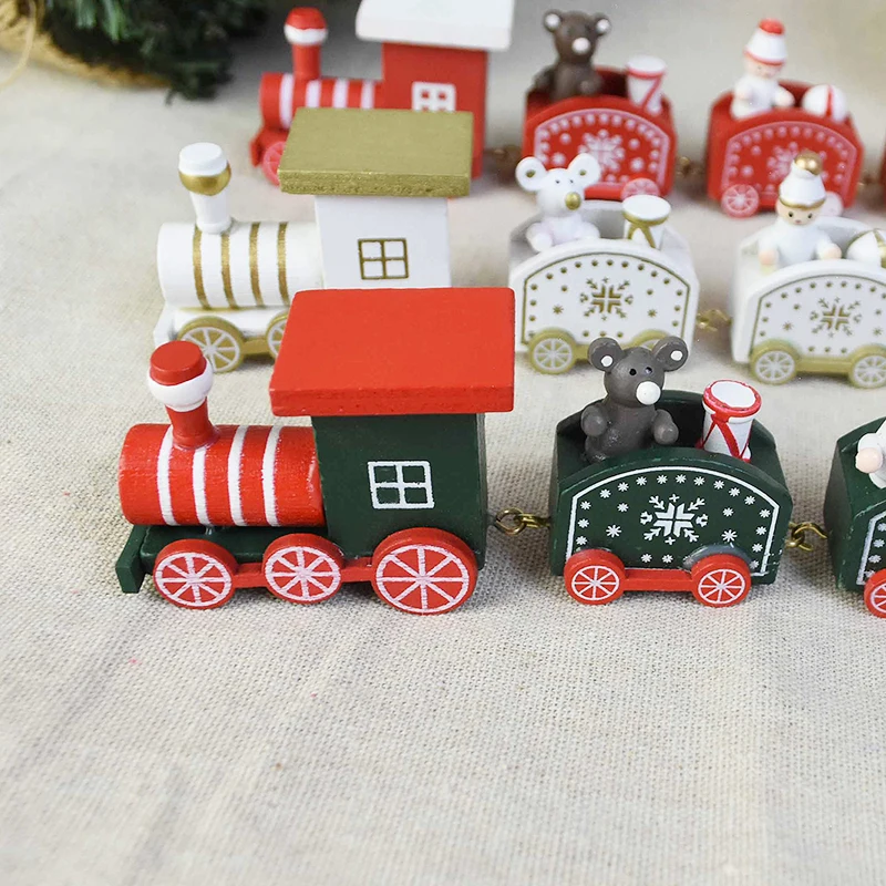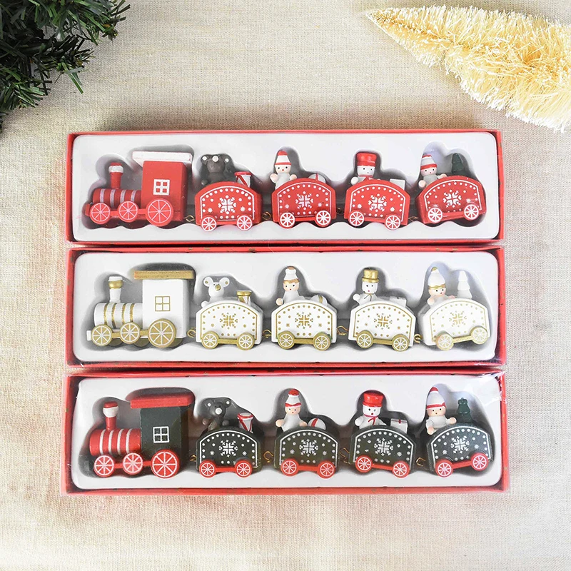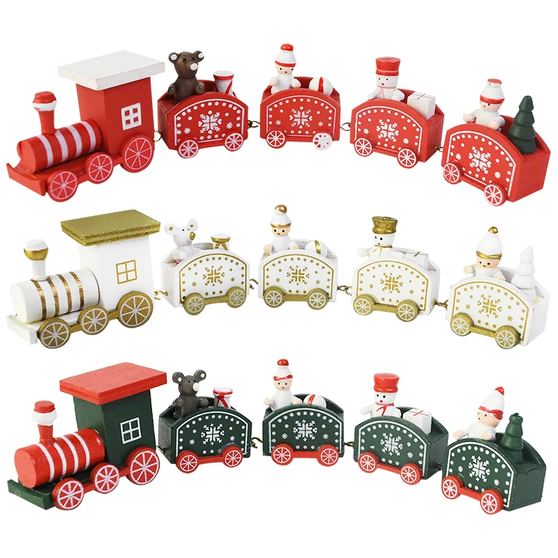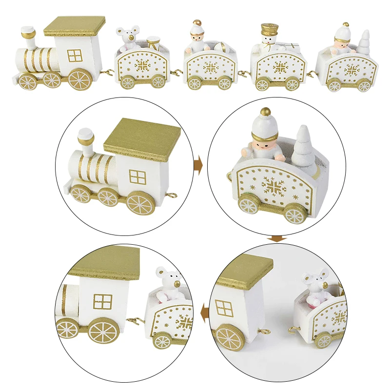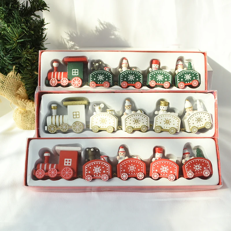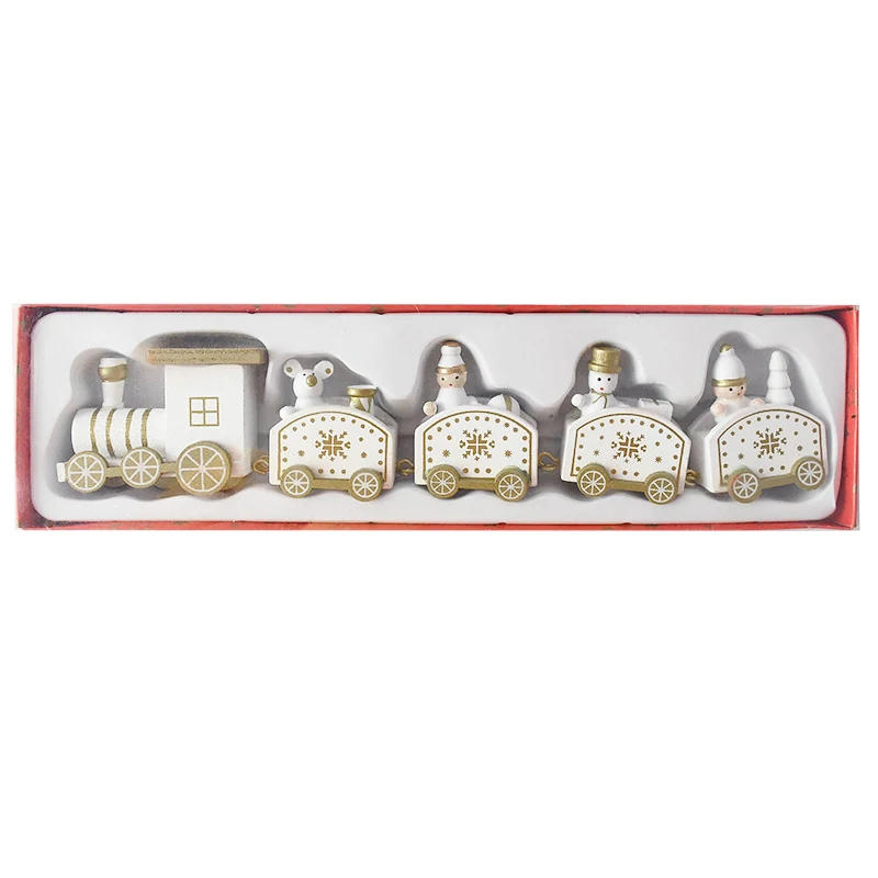 Рождественский деревянный поезд, белый узор в виде снежинок, Рождественское украшение, Новогодняя и Рождественская вечеринка, украшение для елки, рождественские подарки, детские игрушки для поезда
