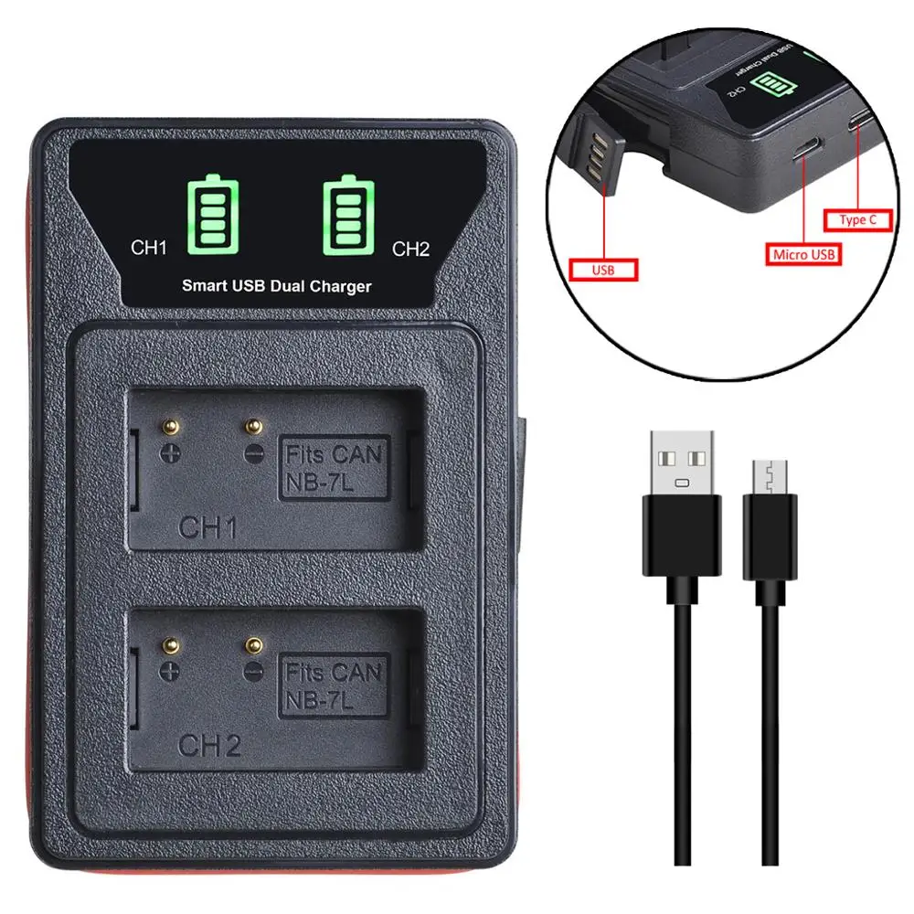 Аккумулятор NB-7L NB 7L NB7L + новое двойное зарядное устройство USB со светодиодной подсветкой для камер Canon PowerShot G10 G11 G12 SX30IS