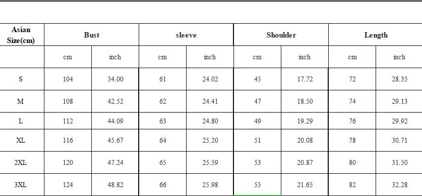 Таблица размеров