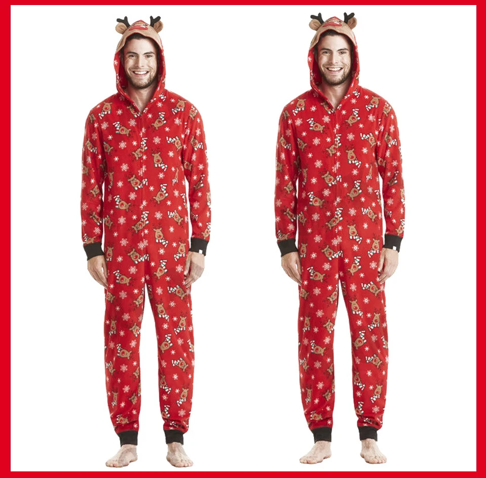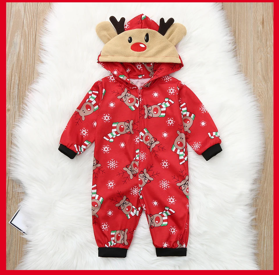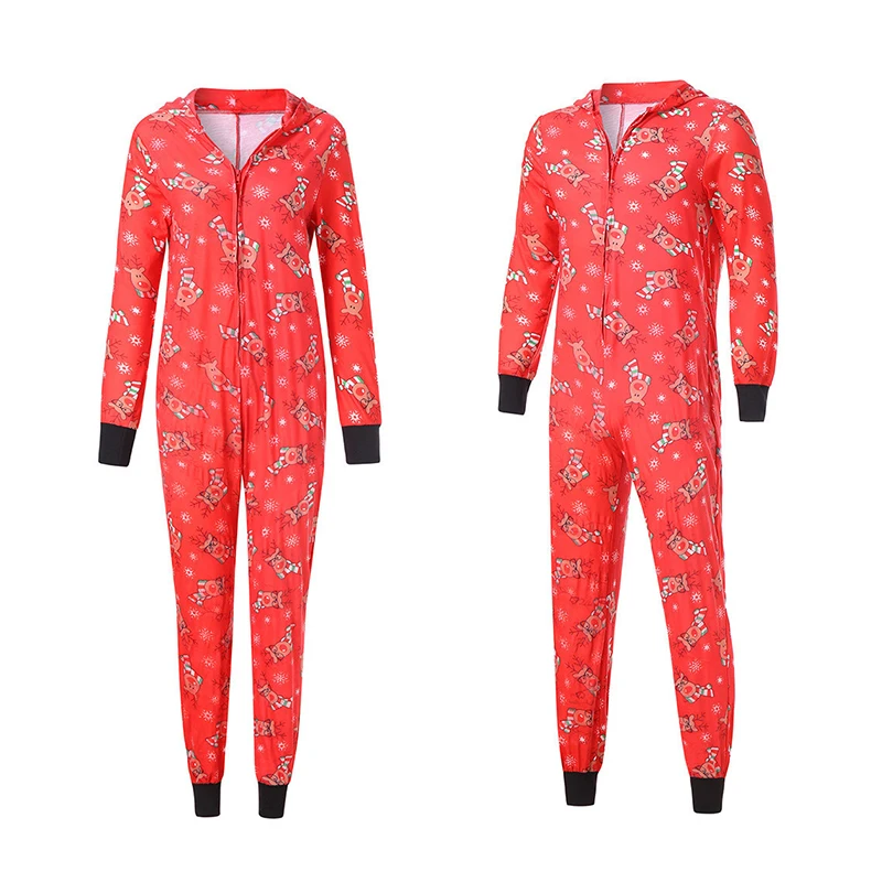 Рождественская Пижама, Одинаковая одежда, красный комбинезон с капюшоном для мамы, дочки, папы, сына, одежда для сна, 2021