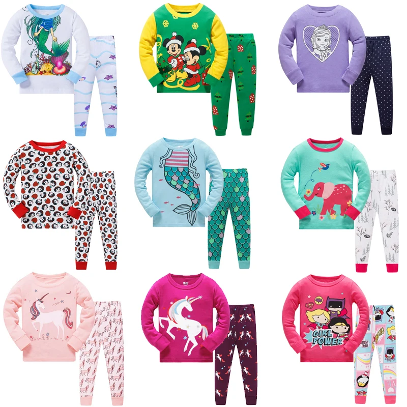 Новинка, детская одежда для сна с рисунком Микки Мауса и животных, семейная детская одежда для девочек, одежда для сна с русалочкой, 3-8 лет, пижамы
