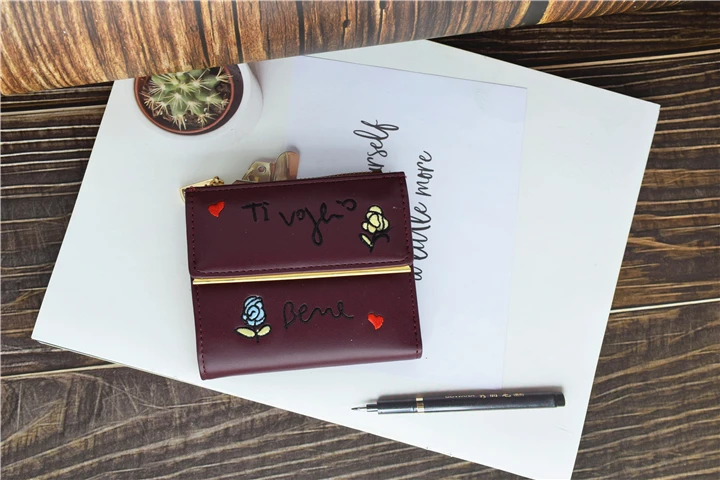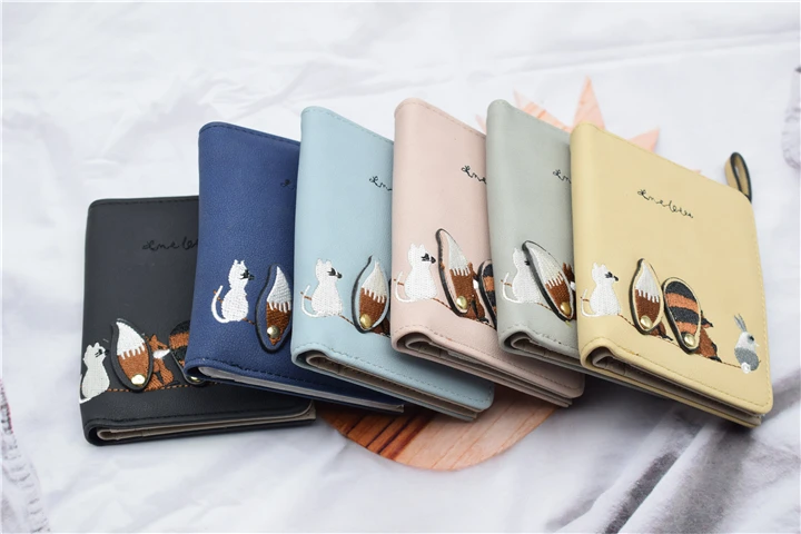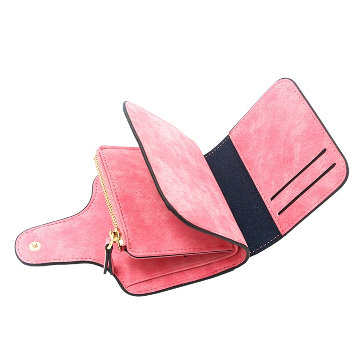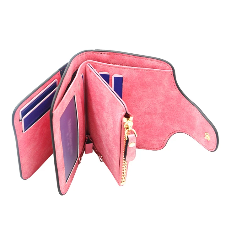 Кошелек женский из искусственной кожи, розовыйчерныйфиолетовыйсинийсерыйкоричневыйкрасный чехол с кредитницей на молнии, короткий бумажник на защелке для женщин