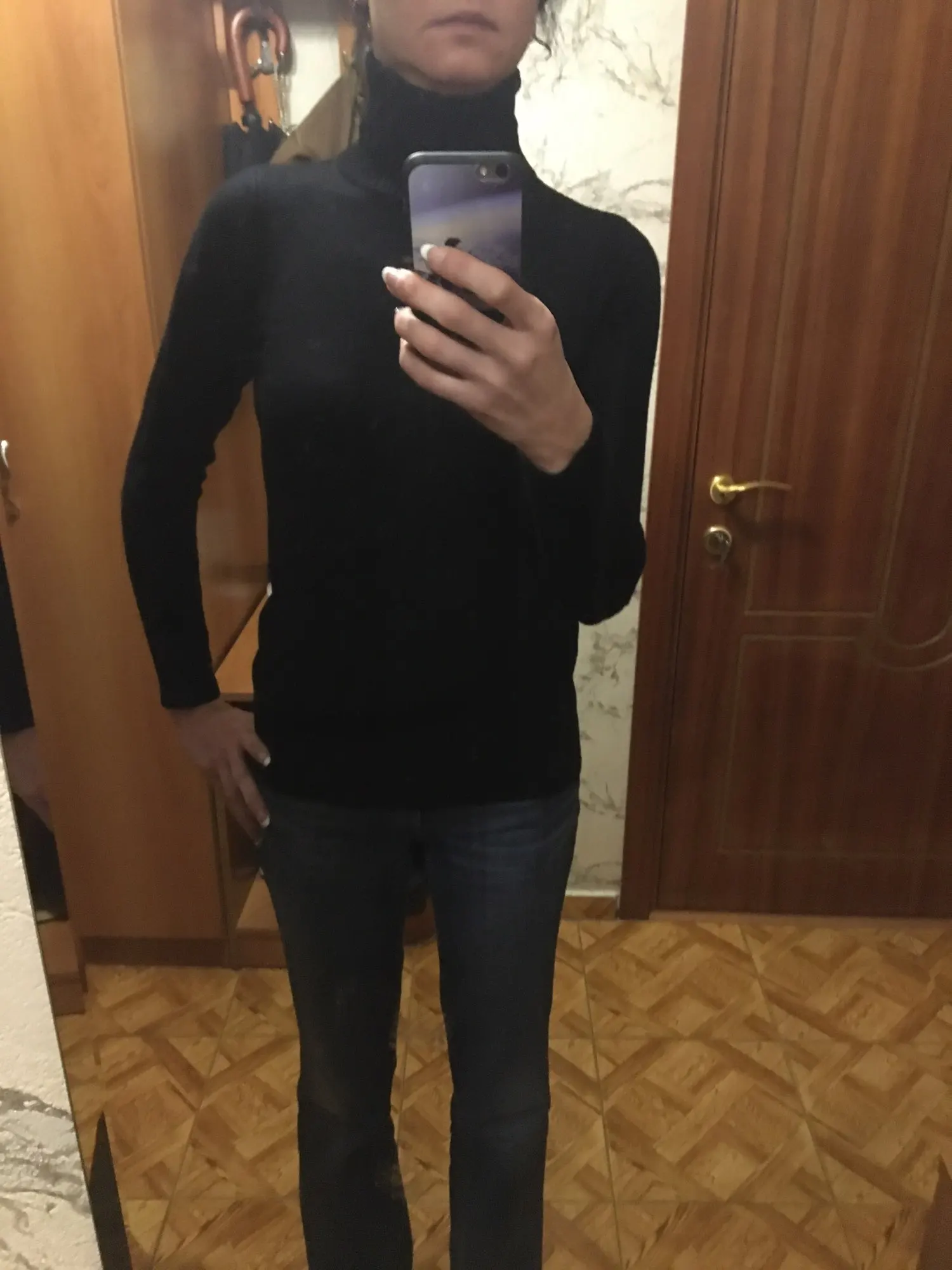 Заказала уже второй такой свитер в другом цвете. Мне нравится, вязка плотная, не тонкая, мягкий. Рукава не короткие, длина свитера хорошая, высокий ворот. Всё отлично. Спасибо:) была одна затяжка на рукаве, не критично, затяну внутрь петельку. Размер идеально на мой 42-44.