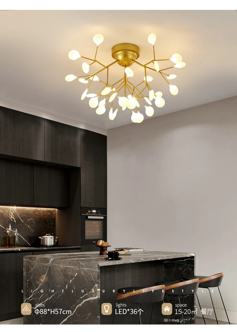 Люстра Светлячок для помещений, потолочные люстры для гостиной, спальни, кухни Lusture, современные светодиодные светильники, скандинавские светильники