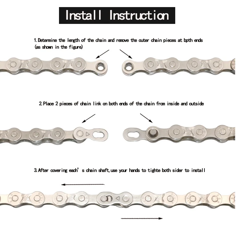 Хорошо. Я подключаю цепь Shimano 9S к этой цепочке на моем пользовательском электровелосипеде. Bafang BBS02. ~ 80 км без проблем. Я проверяю длину цепи через quick link и ее ок.