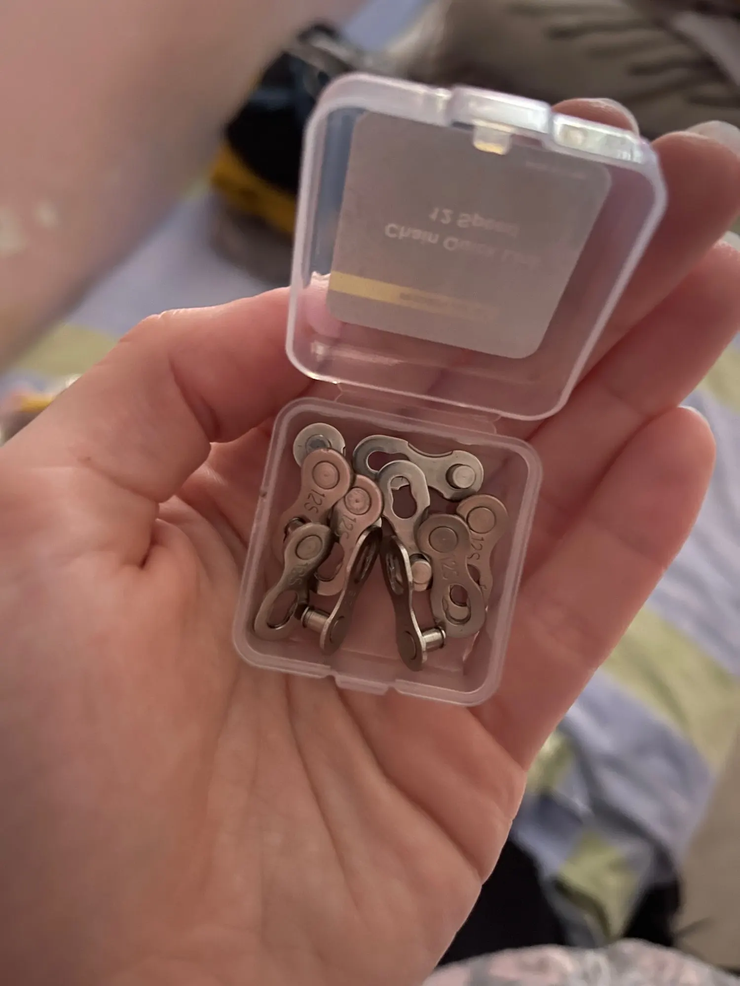 Умеют наши китайские друзья сделать фото для рекламы, коробочка на самом деле оказалась очень маленькой. На звеньях никаких опознавательных обозначений. Защелкиваются с усилием. Цена соответствует качеству. Длина пина соответствует пину «типа» KMC Z8, 7.3 с Али, который сейчас использую. Разница в цене огромная в сравнении с веломагазином, я уже не говорю с оригиналом. Доставка месяц, трек.
