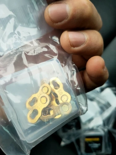Как в описании. Быстрая доставка, прибыла в Канаду через 20 + дней. Обратите внимание, что профиль края этой ссылки не такой, как профиль кромки KMC. KMC link имеет скошенную кромку, в то время как эта ссылка имеет плоский край. (См. Фото) Shimano quick link также имеет скошенную кромку. Я не знаю, как этот плоский край повлияет на производительность переключения, придется ждать до весеннего времени, чтобы попробовать.