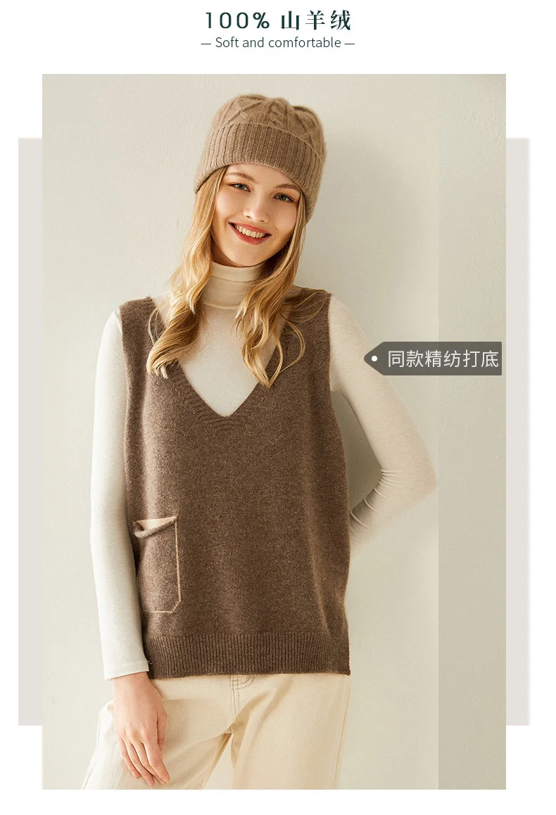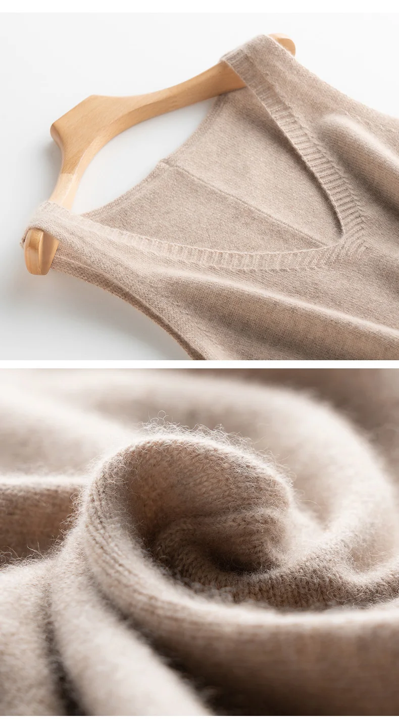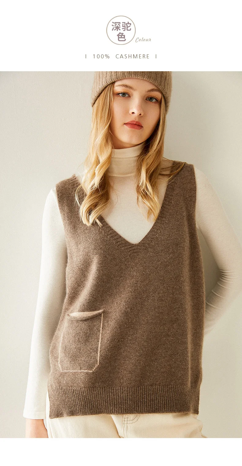 Женский Свободный жилет из 100% козы, кашемировые вязаные пуловеры с V-образным вырезом, женский свитер из пашмины без рукавов, подходит для чувствительной кожи