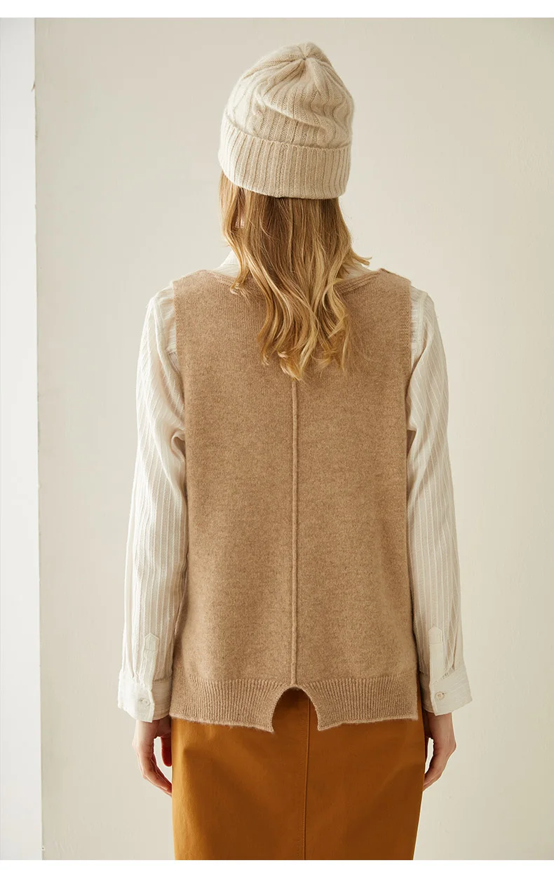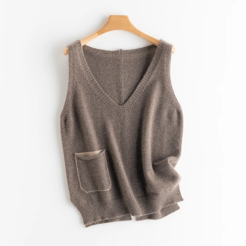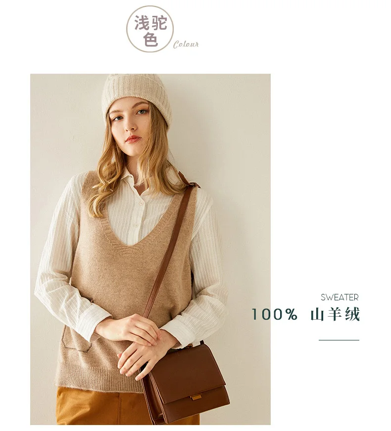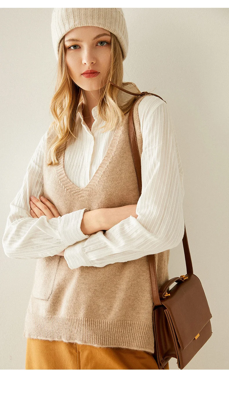Женский Свободный жилет из 100% козы, кашемировые вязаные пуловеры с V-образным вырезом, женский свитер из пашмины без рукавов, подходит для чувствительной кожи