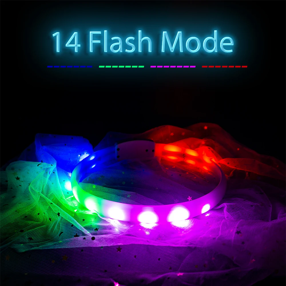 Ошейник для собак, светодиодный, 14 режимов, зарядка USB, защита от потери