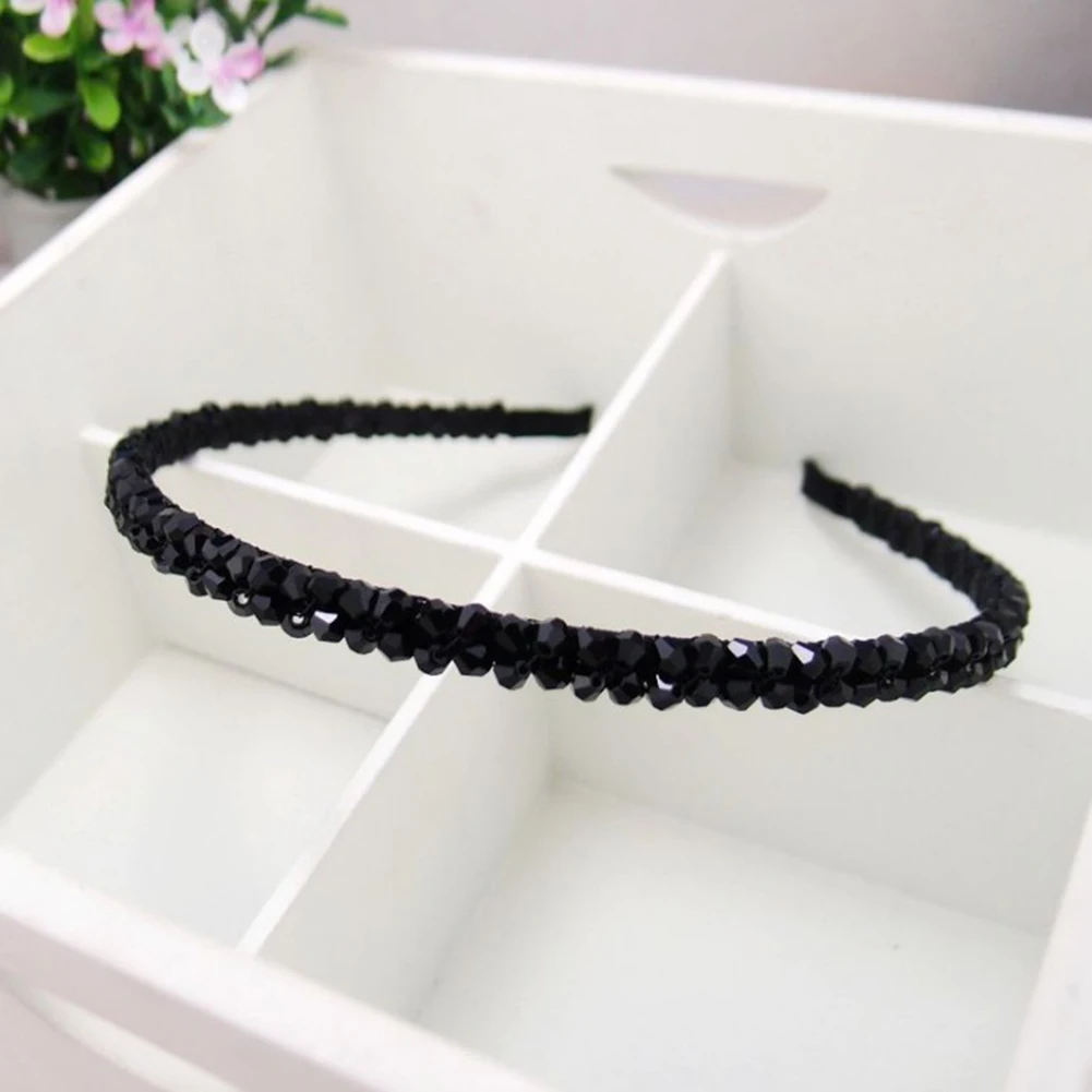 Обруч для волос с блестящими кристаллами, аксессуар для волос ручной работы, тонкий, черный, белый, синий, розовый, повязка для головы с цветком