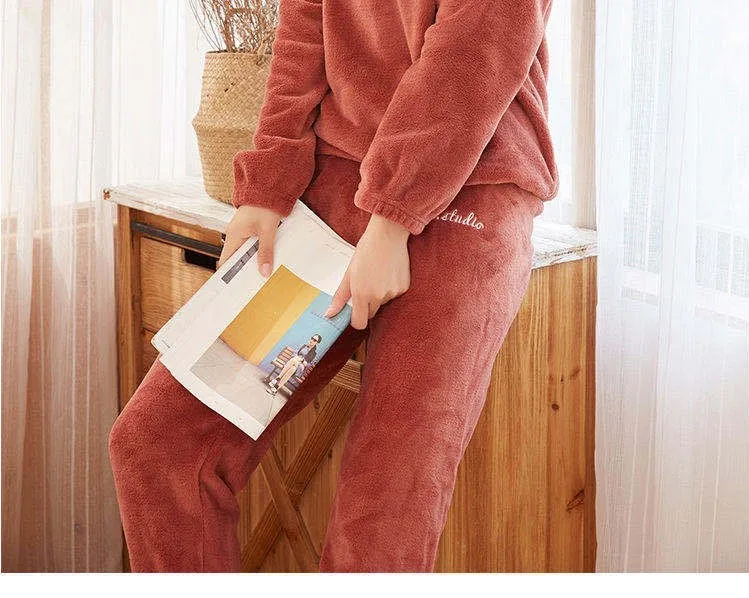 Осенне-зимние теплые женские пижамные комплекты, плотная Коралловая...