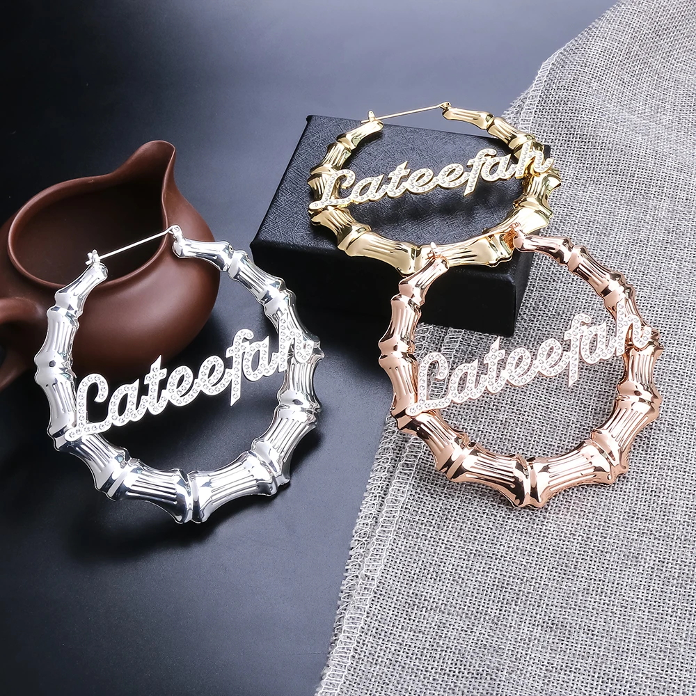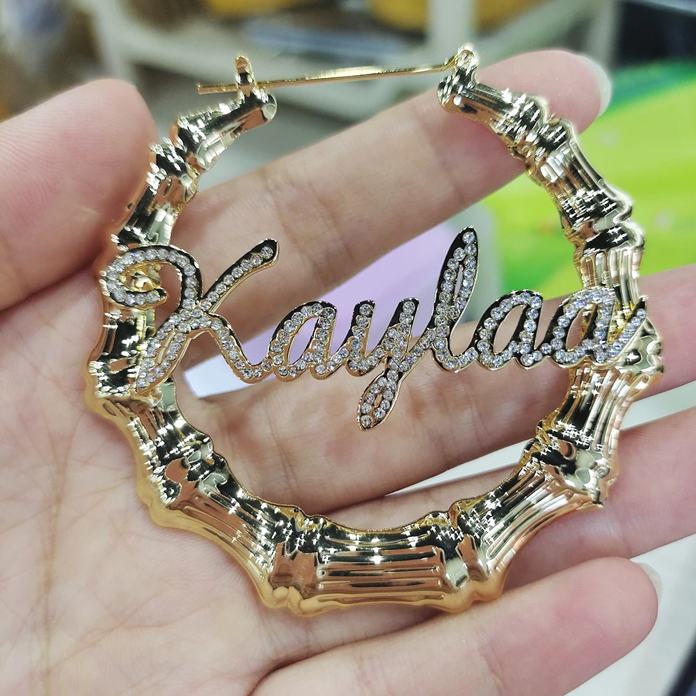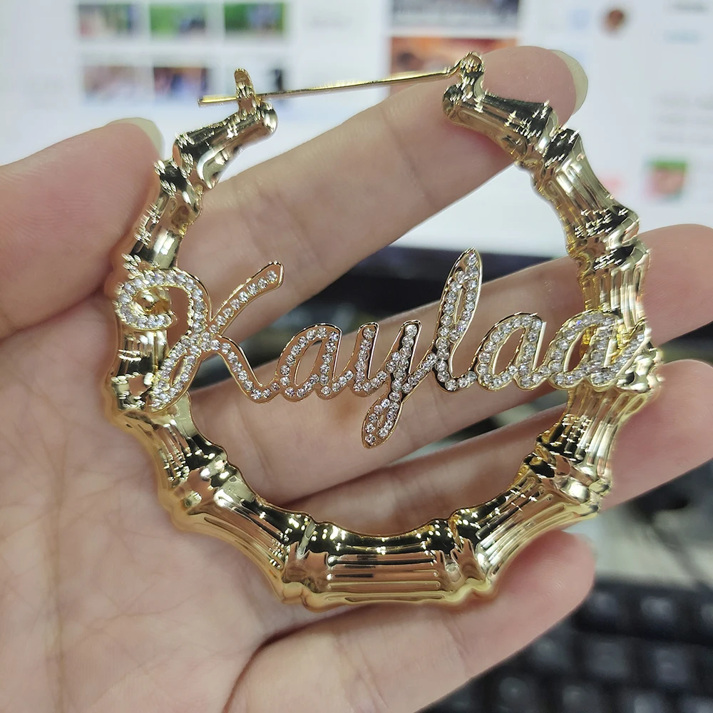 Роскошные женские серьги-кольца из бамбука с фианитом, 40-100 мм