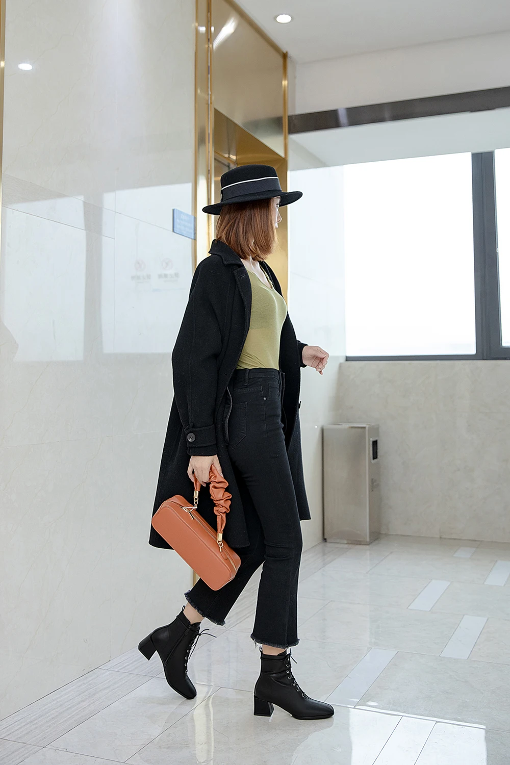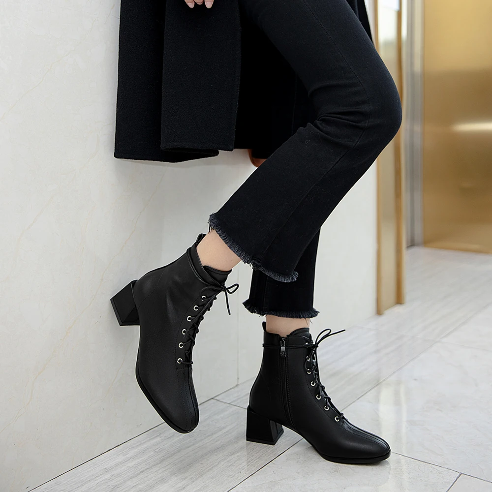 Женские ботильоны, черные, белые ботинки, женские повседневные низкие ботинки на низком каблуке, обувь из искусственной кожи на шнуровке, большой размер 34- 43, для осени