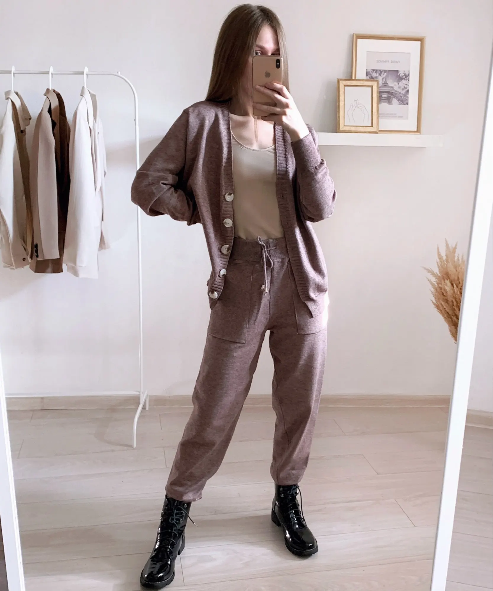 Обожаю трикотажные костюмы. Ведь они такие уютные и комфортные Мой инстаграм - sveta_vi_ Телеграм - lightandfashion Ссылка: https://s.click.aliexpress.com/e/_AfAsXZ Отличный вариант на осень и зиму. Состоит из двух частей - кардиган на пуговицах и джоггеры. Качество замечательное, выполнен аккуратно, нитки не торчали. Преимущество такого костюма в том, что кардиган и джоггеры можно носить отдельно, сочетая их с другими вещами. Материал плотный, приятный к телу, немного колется и хорошо тянется. Штаны на завязках и мне очень длинные. Размер единый подошел хорошо. Мои параметры: 83-63-90 см, рост 164 см. Ссылка: https://s.click.aliexpress.com/e/_AfAsXZ