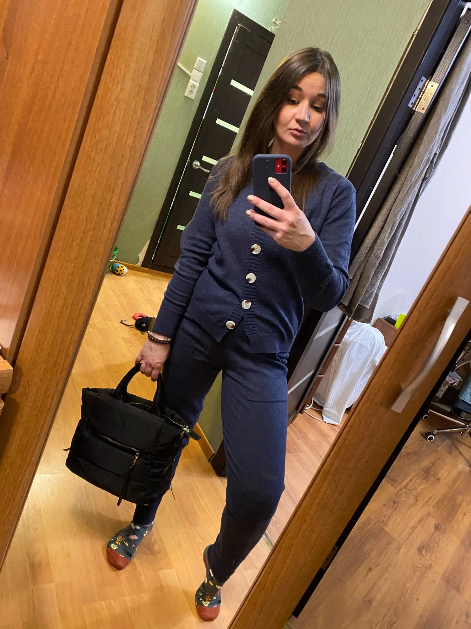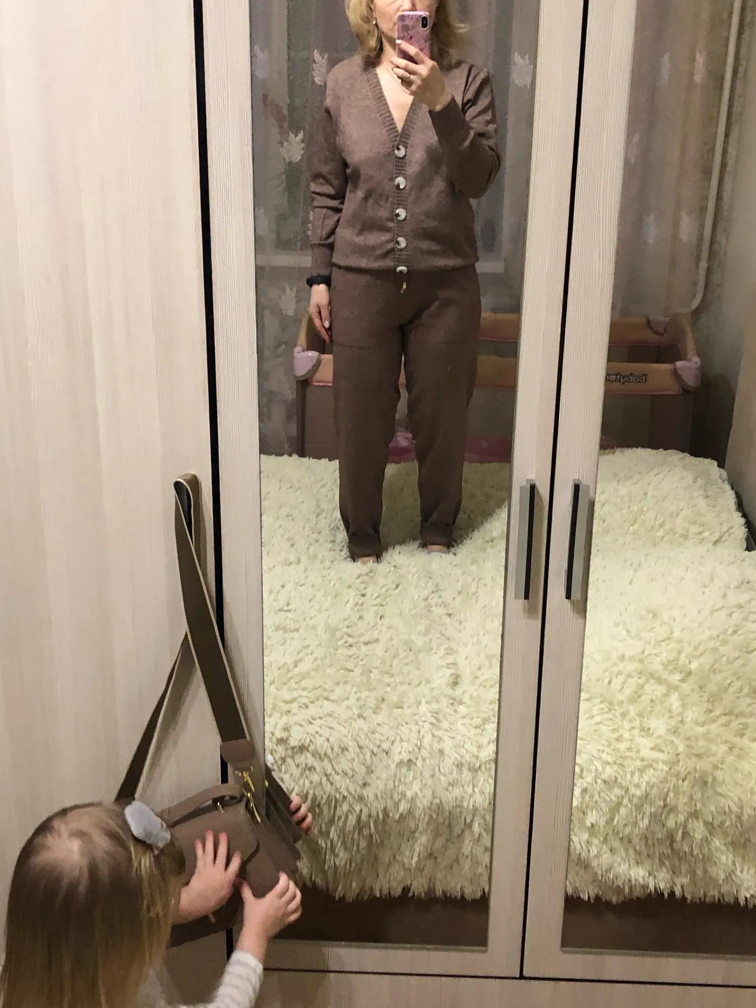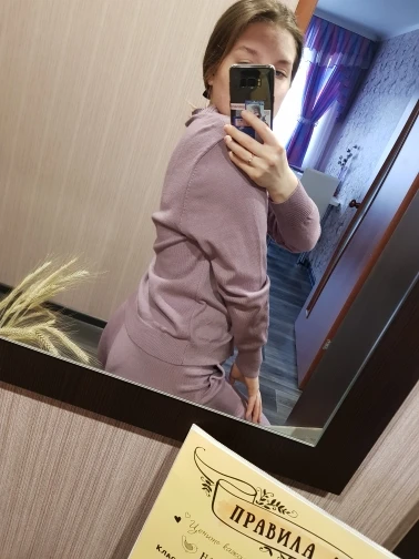 Костюм просто отличный! Мягкий трикотаж, мелкая вязка. Параметры мои 90-70-94, рост 72. Длина хорошая, ничего не колется, затяжек нет, брюки симметричные. Сейчас на последних неделях беременности, поэтому свитер нормально померить не могу)) после родов дополню отзыв. Длина рукава хорошая, я обычно ношу 44й, свитер не свободный. Резиночка в подарок)) доставка до Ростова 11 дней, трек отслеживался