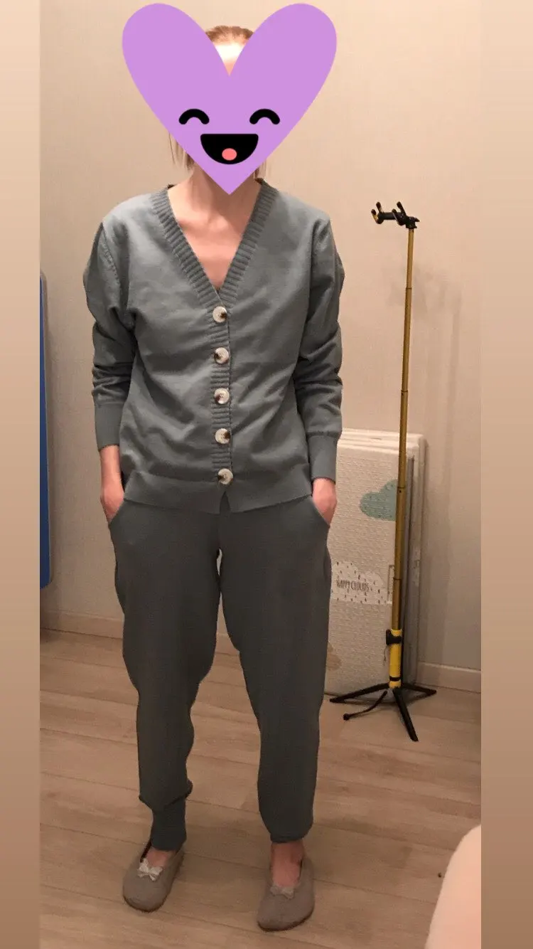 Хороший костюм. Я ОБ 95, ОГ 98, рост 165. Штаны сидят свободно, только попу обтягивают, но не сильно. Резинка на талии, не тугая, комфортно. Длина хорошая, можно даже немного завернуть манжет. Кофта мне прямо как раз, ни какого намека на оверсайз, обычный кардиган, отсутствие пуговицы в низу делает его немного несуразным. Ткань приятная, немного колется, надеюсь после стирки смягчится. Заказывала для дачи на зиму, поэтому довольна, для городских прогулок простоват