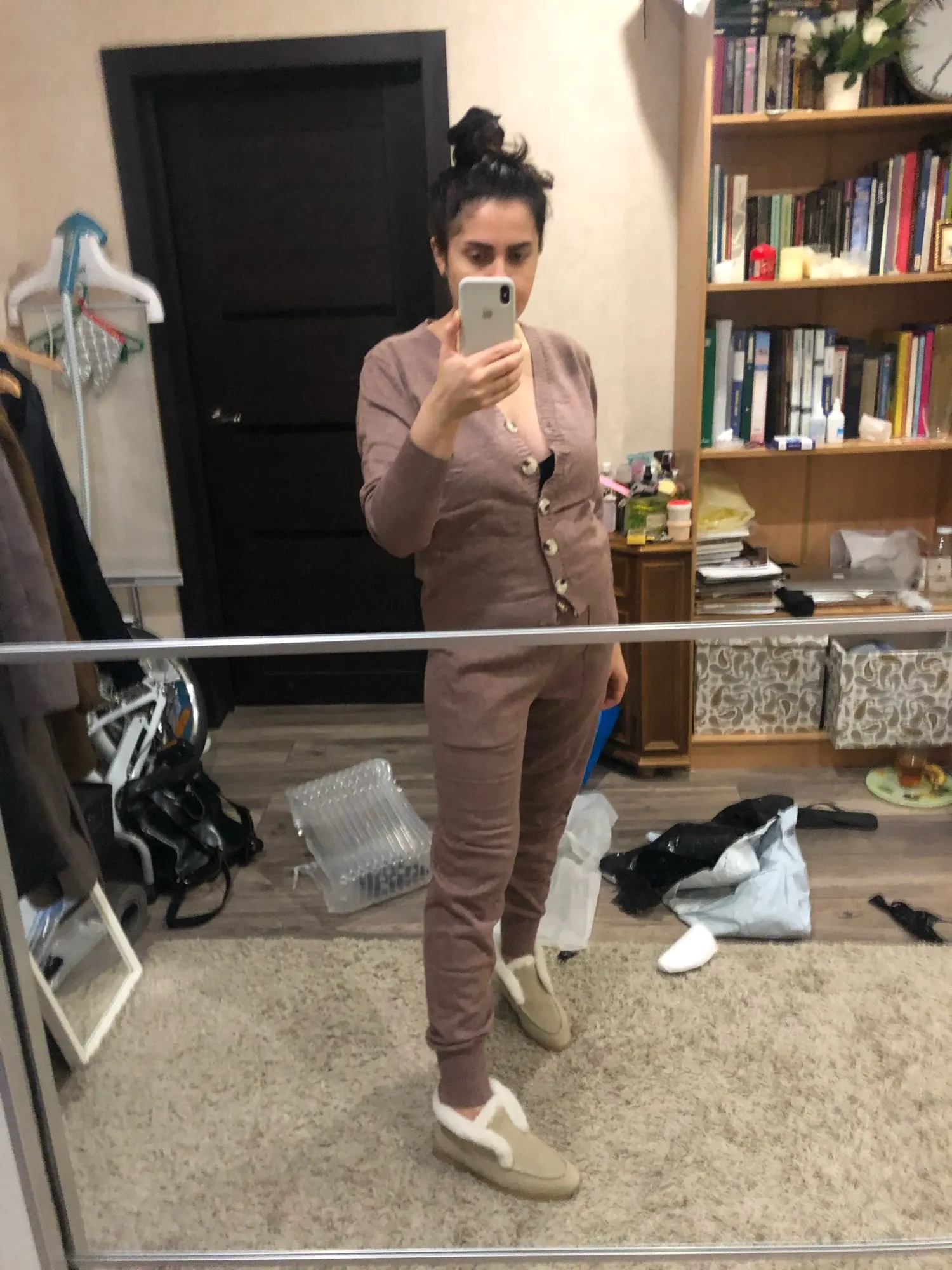 Когда только пришёл, была в восторге, тёплый, цвет красивый, но... Большой Штаны ещё куда не шло, хотя натянуть можно чуть ли не до груди, а кофта висит, жалко.. Носить, конечно, все равно буду. Пришел за 20 дней в Калининград Мои параметры : 95/70/95, рост 170см