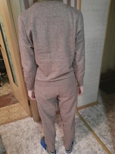 костюм в целом хороший, на рост 176 см длина отличная, кофта тоже в целом норм, можно было бы по длинее чуть чуть вниз, но не критично. на верх 48, низ 50 село хорошо, тянется, есть небольшие зацепки кое где, надеюсь не превратятся в дырки. постараюсь вывернуть внутрь эти ниточки. ничего не колется, тепленький.