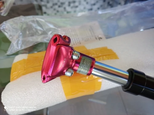 прибыло очень быстро. очень хорошо упаковано. на резьбе присутствовала алюминиевая стружка. внутри смазки достаточно. Люфта нет. Сальник плотный. крупные толчки сглаживает, мелкие не очень. Но все равно ехать намного комфортнее стало.