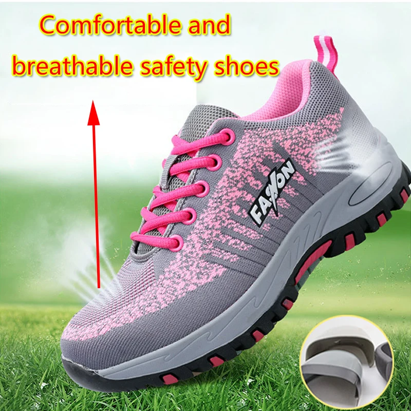 Рабочие ботинки; Женская обувь со стальным носком; Сетчатая легкая дышащая Нескользящая безопасная обувь