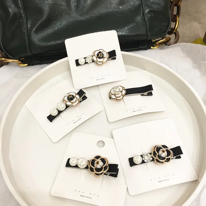 Заколки для волос с камелией и жемчугом женские, модные шпильки в Корейском стиле, аксессуары для волос для девушек и женщин